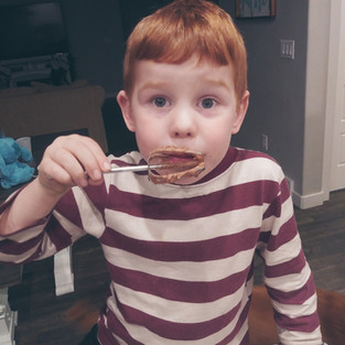 Remove from oven and the spoon remaining peanut butter (you might need more depending on how thick of a layer of peanut butter you want-we always use more.